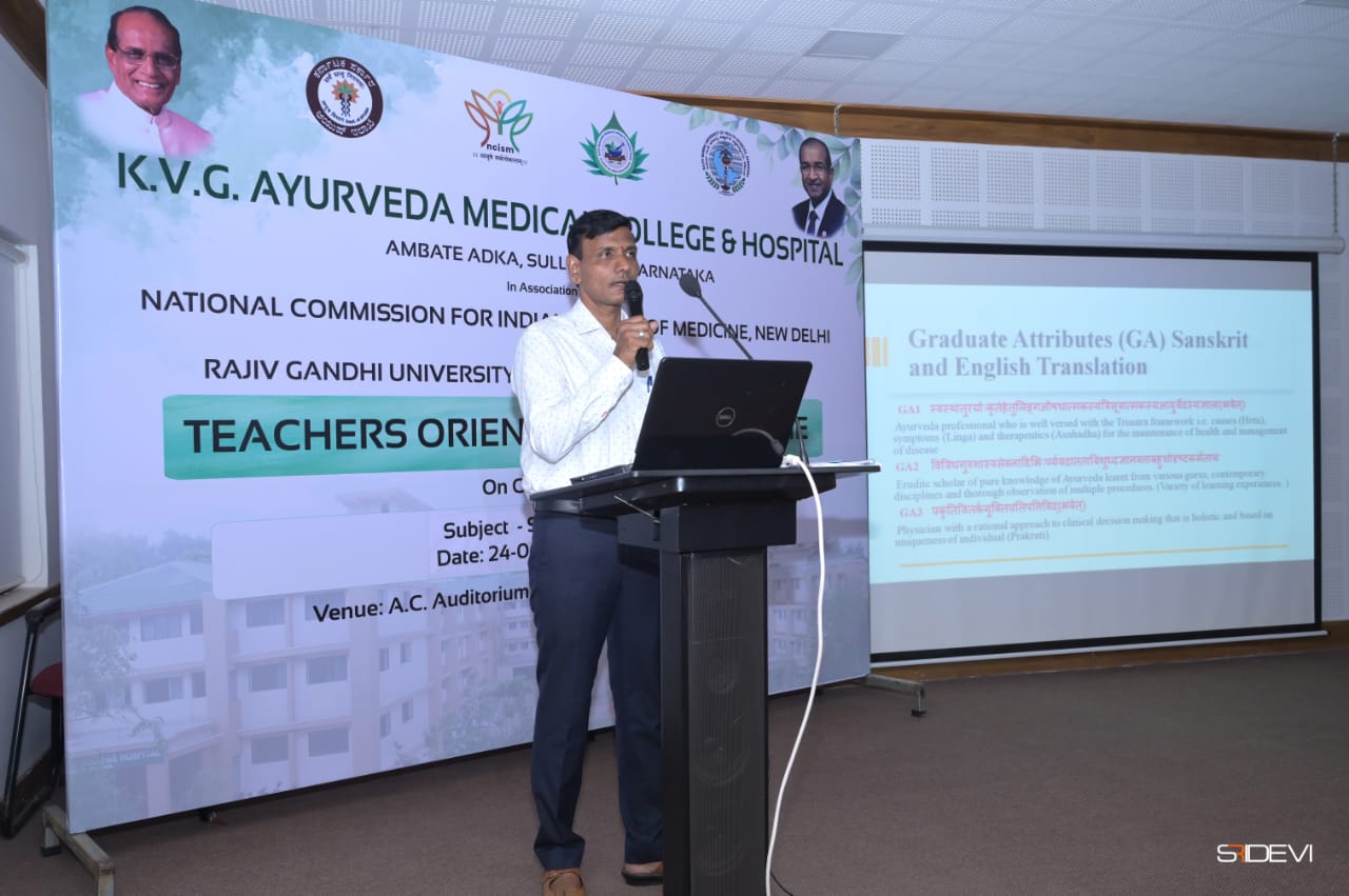 Shalakya Tantra teachers orientation program for teaching the new CBDC curriculum of NCISM was organised at KVG Ayurveda Medical College, Sullia in association with NCISM and Rajiv Gandhi University of Health Sciences, Bangalore, on 24.6.2025.