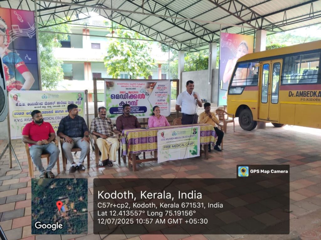 The camp was Organised at Dr AGHSS, School, Kodoth by Rainbow Youth Circle &Reading Room, Kodoth in collaboration with K.V.G. Ayurveda Medical College and Hospital, Sullia. The Doctors, P.G. Scholars, Internees and Hospital Staff of different departments from K.V.G. Ayurveda Medical College & Hospital, Sullia had actively participated in the camp. 142 patients were benefitted from this camp.