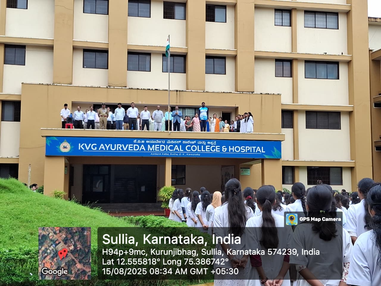 was celebrated on 15.08.2025 at KVG Ayurveda Medical College and Hospital, Sullia. Dr. K. V. Chidananda, President, Academy of Liberal Education®, Sullia hoisted the National flag and gave the Independence day message. Dr. Leeladhar D. V, Principal, KVG Ayurveda Medical College, Dr. Vinaya Shankar Bharadwaj B, Student Welfare Officer, Dr.Pramoda P A, NSS Program Officer, all the teaching and non teaching staff, PG scholars, interns,students & NSS volunteers actively.